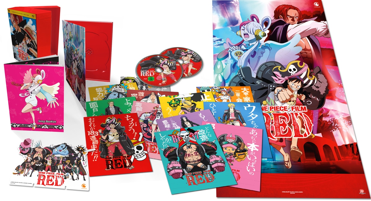 One Piece Film: Red wird ab dem 16. Juni 2023 in drei verschiedenen Editionen auf DVD und Blu-ray erhältlich sein. Die herkömmliche Standard-Edition enthält den rund 137-minütigen Film auf Deutsch und Japanisch sowie ein Song-Booklet, ein Poster und zwei Interviews als Extras. Zusätzlich gibt es eine Limited Steelbook Edition, die nur ein Poster als Bonus enthält, und eine Limited Collector’s Edition mit einem Poster, einem Aufsteller, dem Song-Booklet, zwölf Artcards und zwei Interviews ausgestattet ist. Bei Amazon sind Vorbestellungen ab sofort möglich.