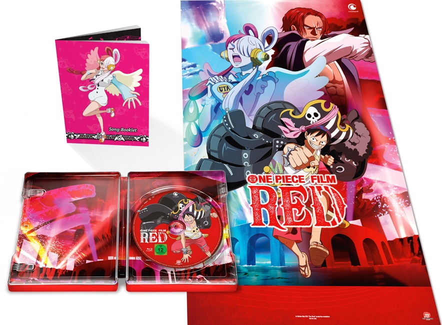 One Piece Film: Red wird ab dem 16. Juni 2023 in drei verschiedenen Editionen auf DVD und Blu-ray erhältlich sein. Die herkömmliche Standard-Edition enthält den rund 137-minütigen Film auf Deutsch und Japanisch sowie ein Song-Booklet, ein Poster und zwei Interviews als Extras. Zusätzlich gibt es eine Limited Steelbook Edition, die nur ein Poster als Bonus enthält, und eine Limited Collector’s Edition mit einem Poster, einem Aufsteller, dem Song-Booklet, zwölf Artcards und zwei Interviews ausgestattet ist. Bei Amazon sind Vorbestellungen ab sofort möglich.