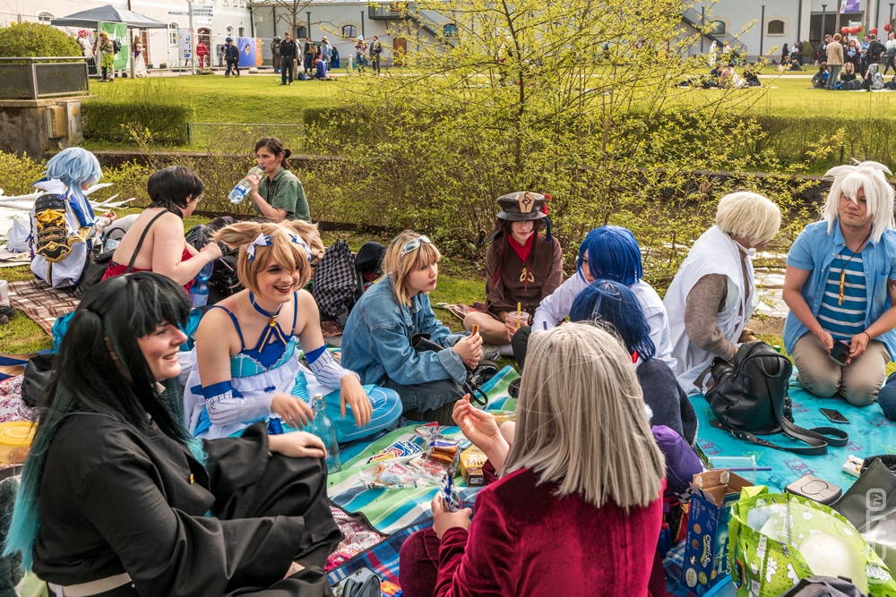 Am zweiten Tag der Convention schien die Sonne und das Wetter war ideal, um eine Picknickdecke auf der großen Wiese auszubreiten. Darüber hinaus war das Programm mit Showacts, Workshops und Wettbewerben gefüllt – es wurde für jeden Geschmack etwas geboten. Leider kam es vormittags zu einem weitgehenden Stromausfall, weshalb im Stadtsaal vorübergehend ohne Technik improvisiert werden musste. Leider schien das Corona-Virus auch dieses Jahr keine Gnade zu zeigen, wodurch unter anderem die Premiere der Berliner Musicalgruppe Serenata ausfallen musste. Dennoch erfreuten viele weitere Showacts, wie die von Flying Sushi Theatre, Daremo Shujinkoo oder der Band TANUKI das Publikum. Im Workshop-Bereich gab es ebenfalls eine vielfältige Auswahl, wie zum Beispiel einen Synchronworkshop für alle, die einen Blick hinter die Kulissen werfen wollten.