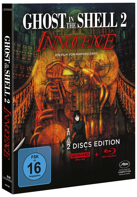 Die Neuauflage von Ghost in the Shell 2: Innocence ist voraussichtlich ab dem 14. Juli 2023 als Standard-Version auf DVD und Blu-ray sowie als Limited Edition auf 4K UHD Blu-ray im Handel erhältlich. Beide Varianten enthalten den etwa 98-minütigen Film mit deutscher und japanischer Sprachausgabe sowie diverse Extras, unter anderem einen Audiokommentar, ein Interview und ein Making-of. Vorbestellungen sind fortan bei Amazon möglich.