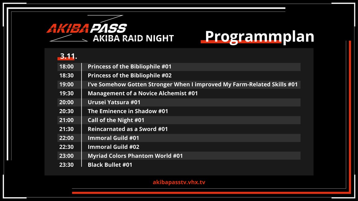 Heutige AKIBA RAID NIGHT mit Promo-Code kostenlos streamen & Programm
