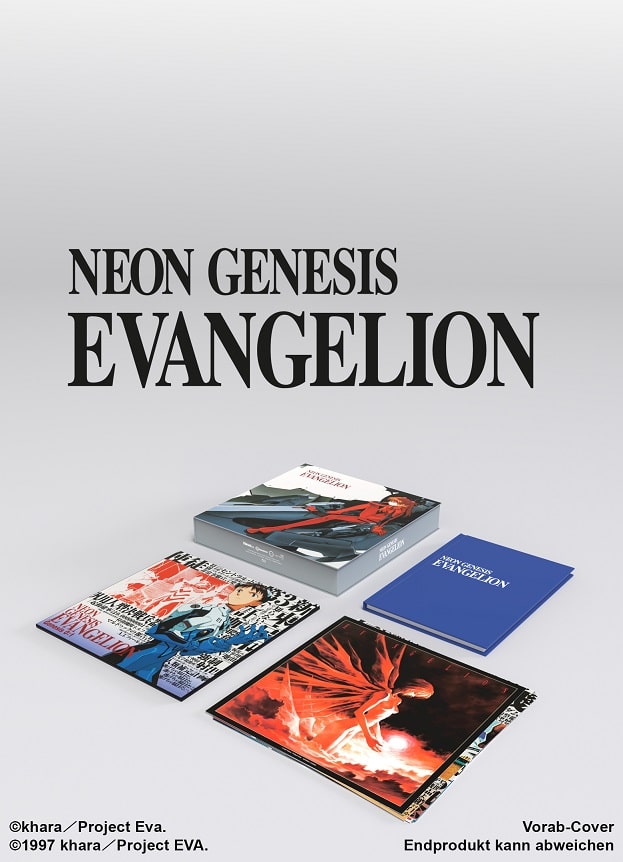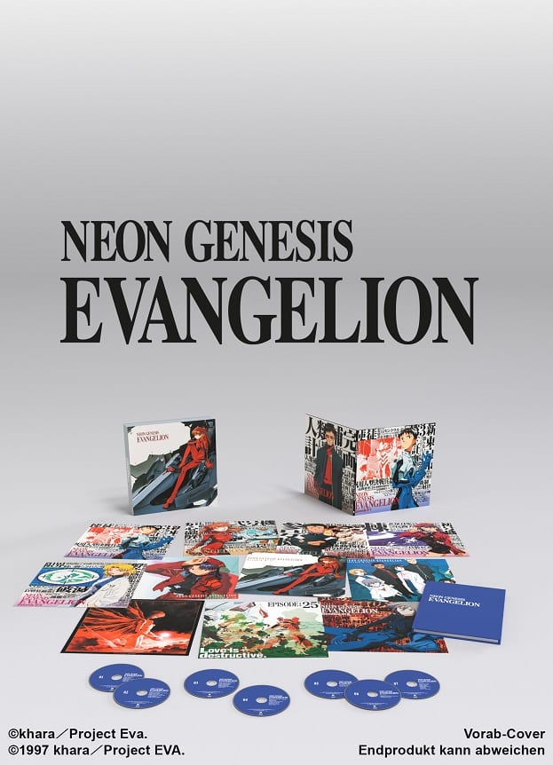 Die Komplettbox wird die komplette 26-teilige Anime-Serie inklusive der klassischen deutschen Synchronisation aus dem Jahr 2004 und der Filme Evangelion: Death (True)² und The End of Evangelion mit japanischem Originalton enthalten. Zudem erscheint der Anime erstmalig auf Blu-ray! Die Collector’s Editions unterscheiden sich im Umfang, weshalb sich Besitzer der Blu-ray-Komplettbox an noch weiteren Extras erfreuen können.