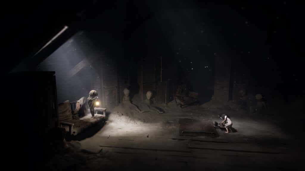 Als ich dann den Controller in die Hand nehmen durfte, fiel mir sofort eine Sache auf. Die Steuerung ist genau dieselbe wie bei Little Nightmares 1 und 2. Es gibt eine Taste zum Interagieren, zum Schleichen, zum Sprinten, zum Ein- und Ausschalten der Petroleumlampe und eine zum Springen – fertig. Einfach und leicht zu verstehen.