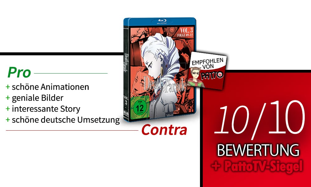 Nachdem am 10. März dieses Jahres das erste Volume der Anime-Serie Death Parade erschienen war, ist die Zeit bis zum letzten Volume sehr schnell vergangen. Am 13. Mai erschien offiziell das nun letzte Volume der Mystery-Anime-Serie Death Parade in Deutschland. Meine Meinung zur ganzen Serie gibt es in dieser Rezension. Patrick Snir
