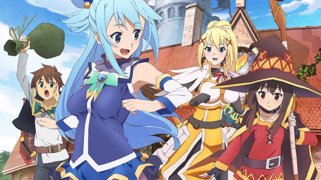 So ist es doch selbstverständlich, dass er sich als Vollblut-Gamer für die zweite Option entscheidet und kurzerhand die Göttin selbst als sein Wunsch-Item mitnimmt. Aqua war sich allerdings gar nicht dessen bewusst, dass man auch sie wählen kann und wird zusammen mit Kazuma in das Abenteuer geworfen. Schnell stellen sie aber fest, dass es sich bei der Fantasy-Welt um eine relativ normale Welt handelt und sie verbringen daher zunächst ihren Alltag mit Zeitarbeiten und vergnügen sich in einer örtlichen Gilde. Sie dürfen aber nicht vergessen, dass sie als registrierte Helden das Böse in der Welt bekämpfen müssen und suchen nun weitere Mitglieder für ihre Gruppe. Schon bald melden sich eine explosionssüchtige Magierin namens Megumin und die lüsterne Ritterin Darkness bei Kazuma und Aqua, die der Gruppe beitreten möchten. Gewiss werden das aber nicht die einzigen sein, die sich der lustigen Truppe anschließen möchten.