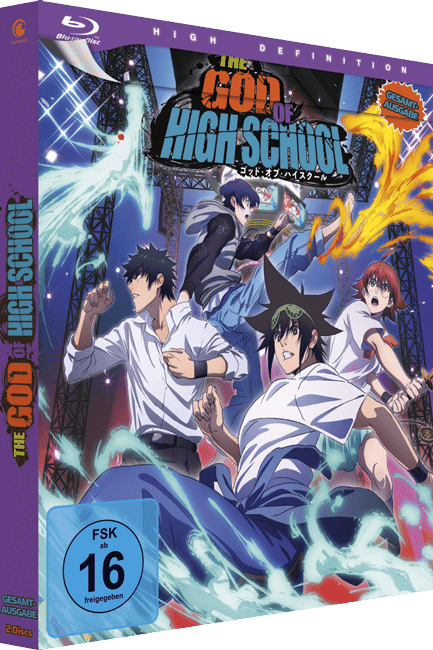 Crunchyroll veröffentlicht die 13-teilige Anime-Serie The God of High School voraussichtlich am 16. Juni 2023 als Gesamtausgabe auf DVD und Blu-ray. Diese umfasst alle Episoden mit deutscher und japanischer Sprachausgabe sowie zwei Artcards, Sticker, das Clean-Opening und -Ending sowie Poster als Extras.