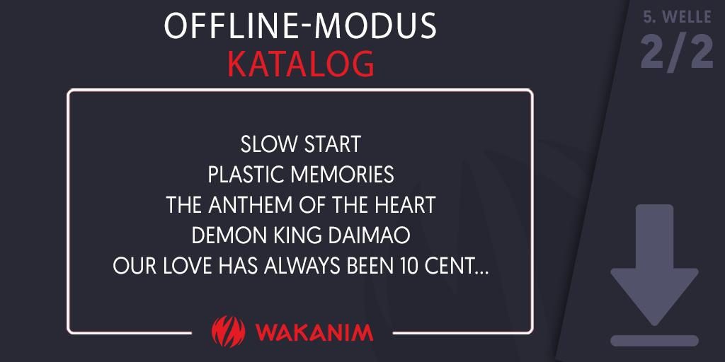 Seit April dieses Jahres bietet Wakanim allen VIP-Benutzer die Möglichkeit, mit der Wakanim-App auf einem Android-Endgerät (Smartphone und Tablet) kompatible Anime-Serien herunterzuladen und anschließend offline zu genießen. Für alle Apple-Benutzer gibt es demnächst dieselbe Möglichkeit. Zudem folgen in den kommenden Wochen bzw. Monaten noch mehr Anime-Titel.