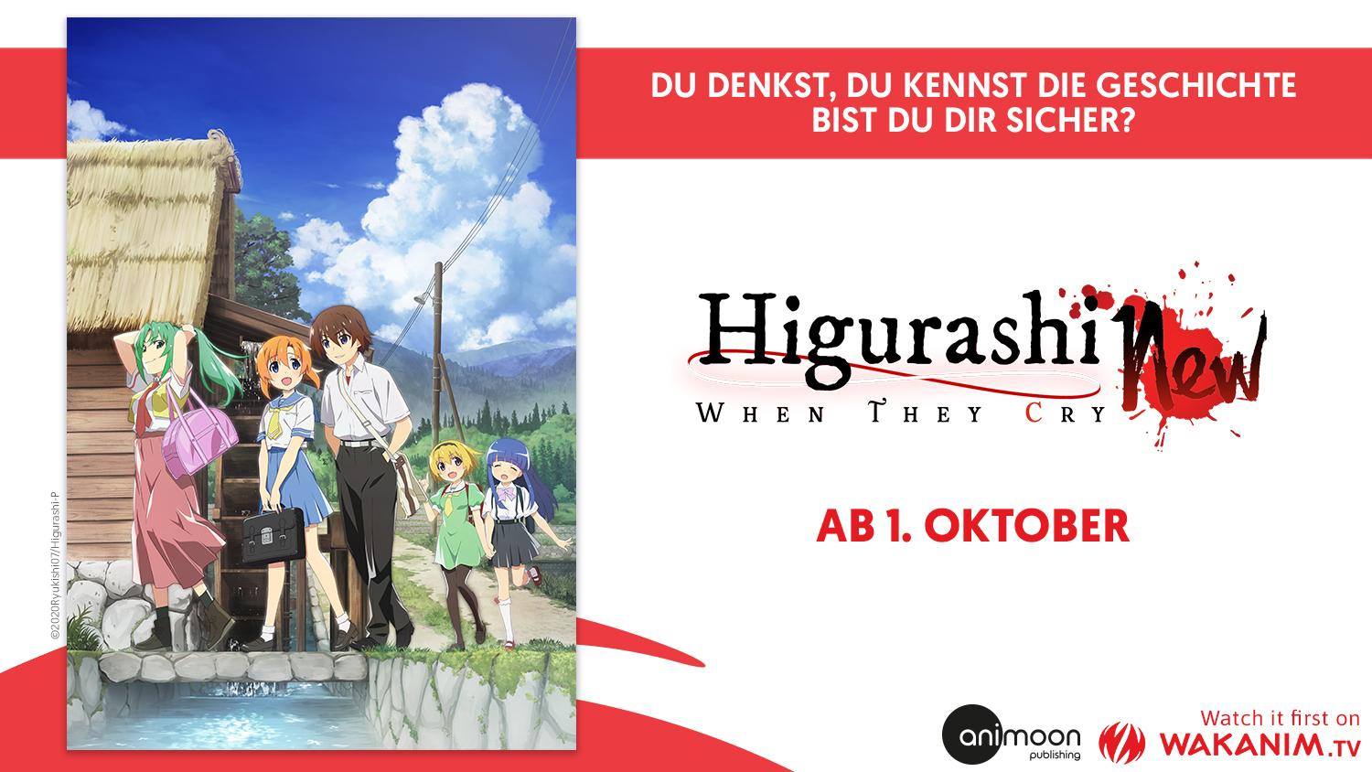 Nachdem das Anime-Label AniMoon Publishing bereits bekanntgab, dass man sich die Lizenz zur neuen Anime-Adaption von Higurashi: When They Cry (jap. Higurashi no Naku Koro ni) sichern konnte und im nächsten Jahr auf Disc veröffentlicht, enthüllte heute Wakanim, dass man die Serie demnächst im Simulcast zeigen wird.
